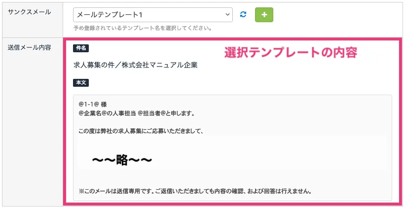 応募があった際に自動的にサンクスメールを送る事で企業信頼度が上がりますので登録する事をおすすめします。