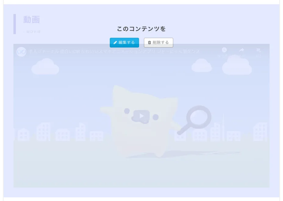 - 編集したいコンテンツにカーソルを持っていくと、【編集する】【削除する】ボタンが表示されるので、【編集する】ボタンを押してください。